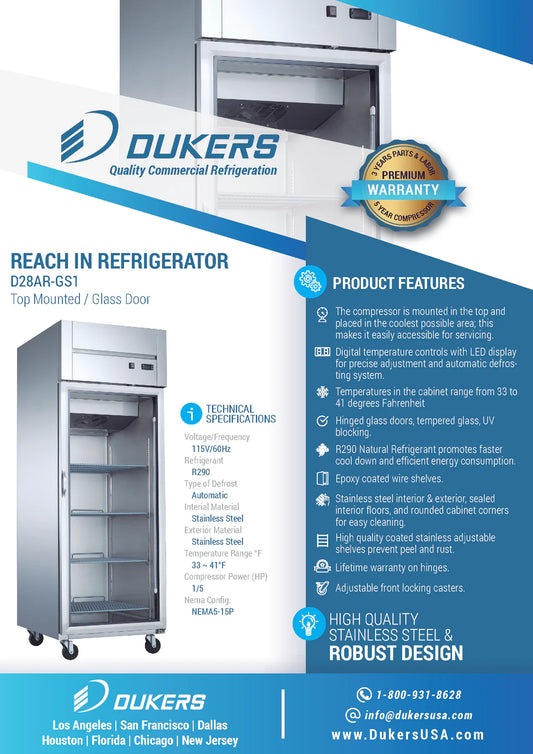 D28AR-GS1 Top Mount Single Glass Door Commercial Reach-in Refrigerator