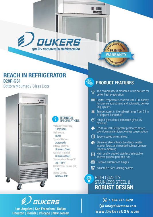 D28R-GS1 Bottom Mount Glass Single Door Commercial Reach-in Refrigerator