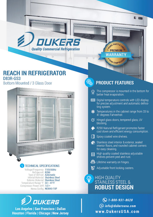 D83R-GS3 Bottom Mount Glass 3-Door Commercial Reach-in Refrigerator