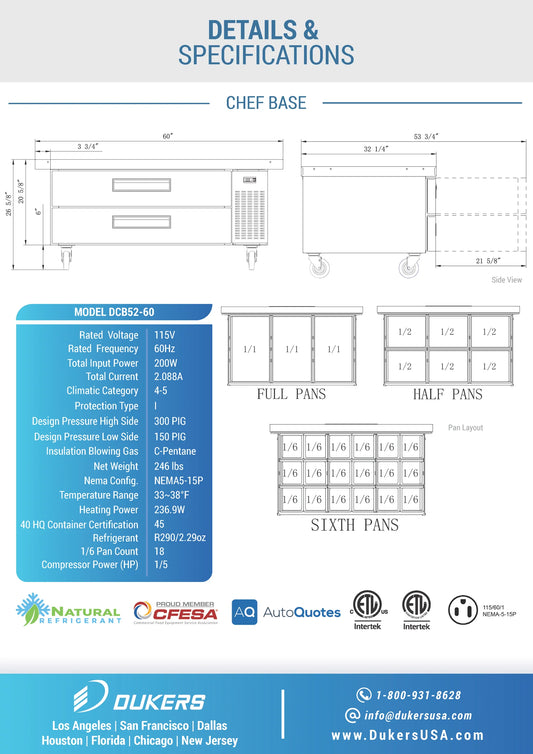 DCB52-60-D2 Chef Base Refrigerator with 2 Drawers