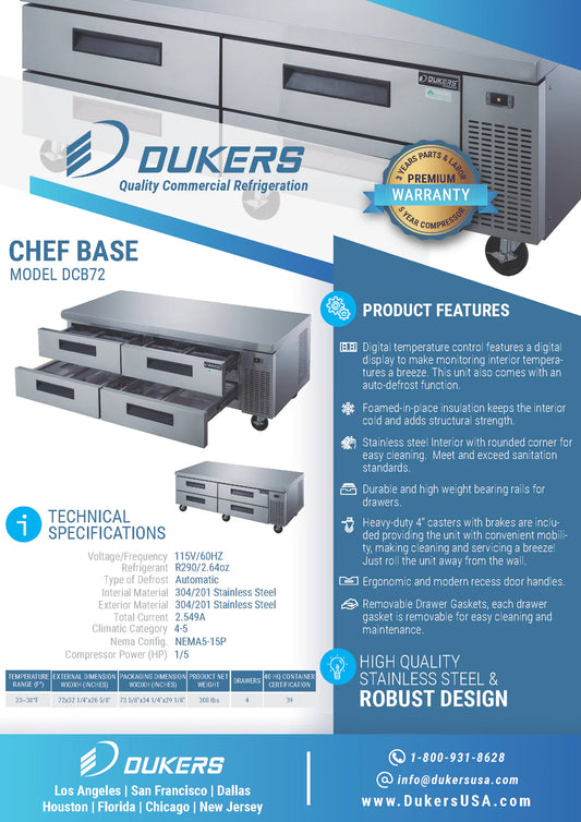 DCB72-D4 Chef Base Refrigerator with 4 Drawers